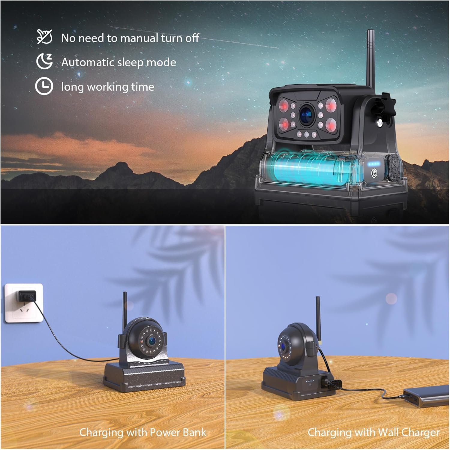 - 👍Upgraded Low-power Technology: The magnetic camera system enables extended operation with automatic startup/shutdown. The camera powers on/off instantly with your screen — no manual controls needed. Forget about battery drain or frequent charging; enjoy effortless monitoring and enhanced convenience.