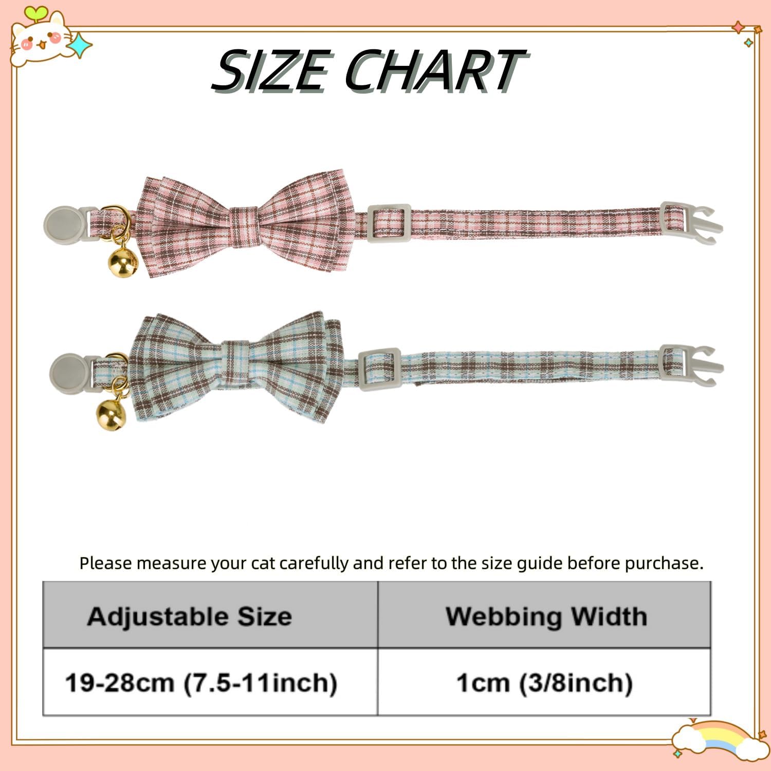 2 Pack Soft Cotton Cat Collars with Bowtie and Bell Breakaway Plaid Cat Kitten Collar(Pink and Jade Green)