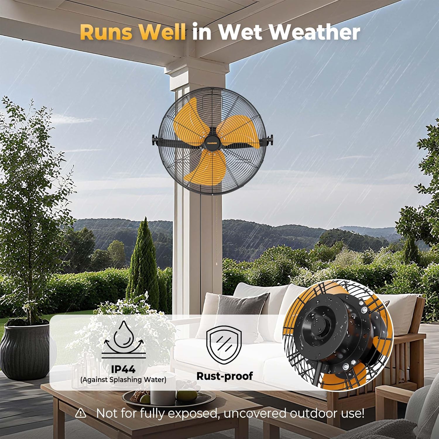 • Triple Safety & Commercial Reliability: A stable wall mount minimizes vibration, while heavy-duty safety latches, safety screw, and overheat protection ensure safety in crowded or complex environments. This fan is ideal for garage, greenhouse, gym, chicken coop, horse barn, shop, or covered outdoor spaces like gazebo, patio, pergola, and porch.