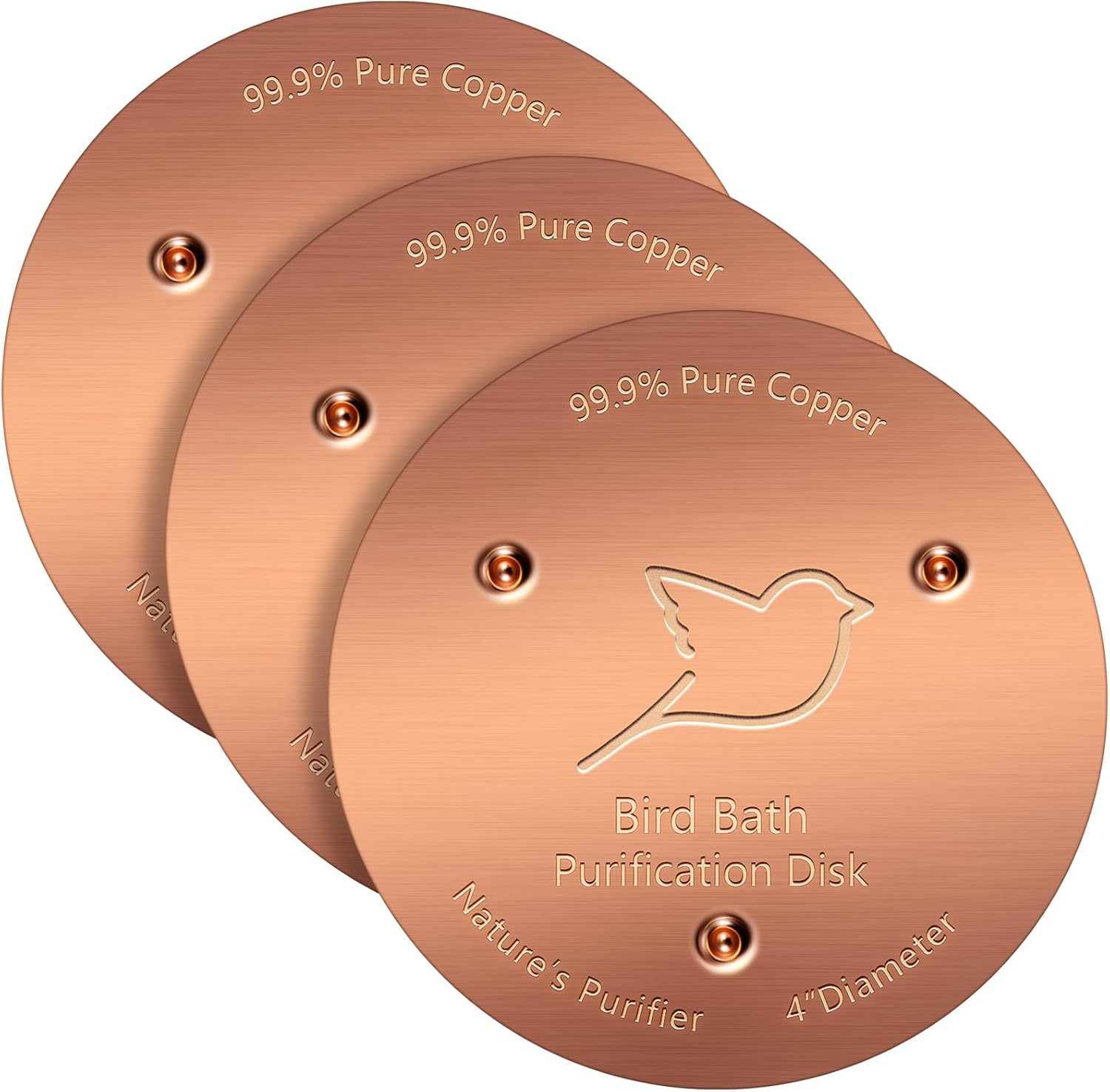NNG 3 Pack Bird Bath Copper Disk,1mm Thick Reinforced 99.9% Pure Copper Bird Bath Purification Disk with Triple-Point Support,Physical Safe Water Cleaner for Outdoor Birdbaths Bowls,All-Season Use