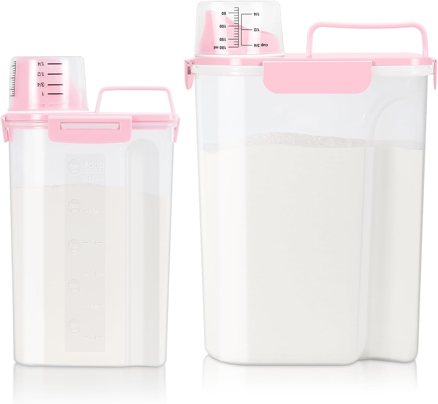 TBMax Rice Container 2 Pack, Airtight Cereal Container Oatmeal Storage with Easy-pouring Spout & Handy Cup for Flour Grain Beans, Pet Dog Cat Bird Food Storage Dispenser-Pink