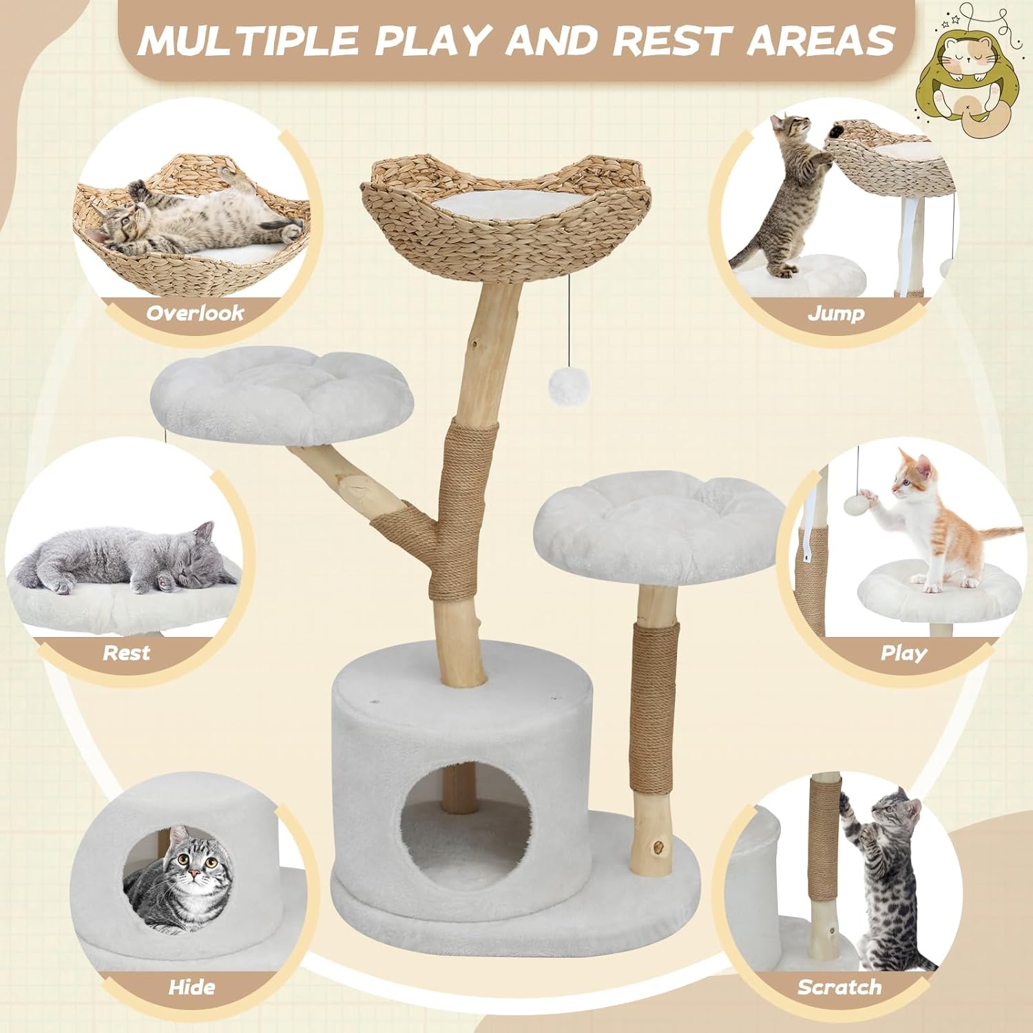 • Sturdy & Solid Wood Cat Tree: This beautiful, unique multi-level cat furniture is meant to hold cats weighing up to 25 pounds or even multiple cats! It is crafted from 100% natural solid pear wood, ensuring durability for years to come. Equipped with a 20.8" diameter thick heavy-duty base to ensure sturdiness and stability. The anti-tip design ensures safe climbing for cats.