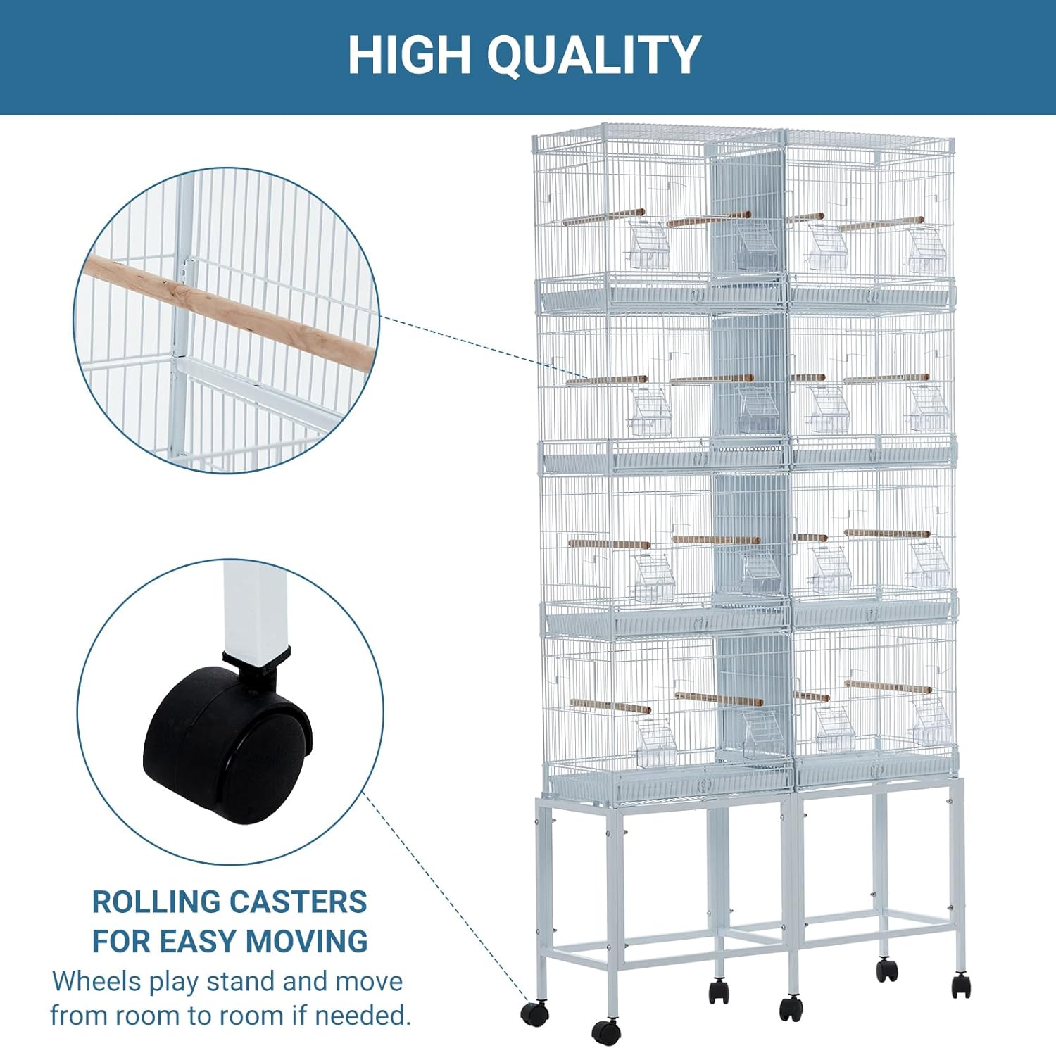 - 【Multiple Large Access and Perches】Designed by multiple doorways for your pet birds to access easily, 16 perches allows it accommodate many birds, and the perches provide lots of solutions for adding toys and accessories under the individual tray allowing the space more flexible .