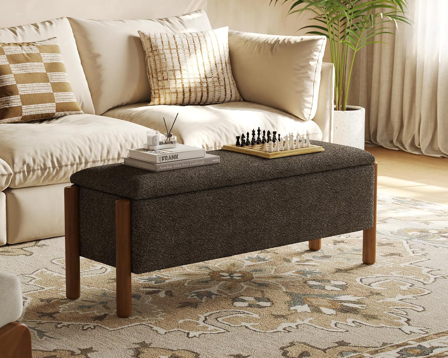 • Sturdy Wooden Legs with Adjustable Feet: Storage sofa bench like this boast strong, cylindrical wooden legs for stability. Crafted from high-quality wood, this storage bench's legs withstand daily use. Adjustable feet on this storage bench for bedroom or entryway prevent wobbling on uneven floors. This ottoman with storage remains stable on any surface. Storage ottomans with such legs and feet ensure durability