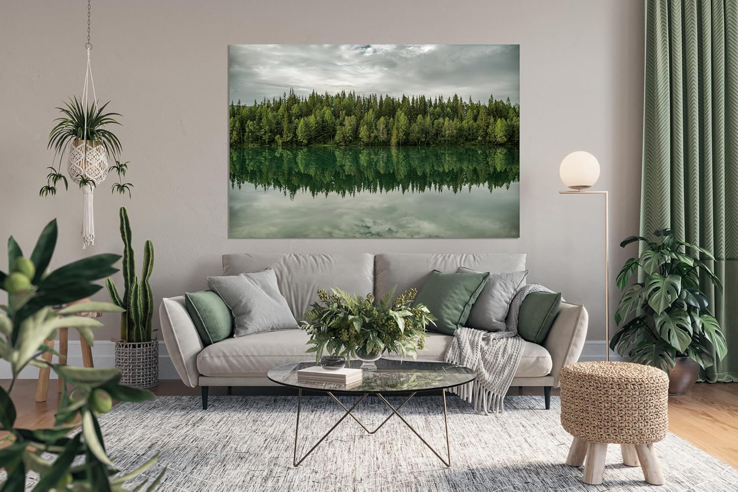 Nature Wall Art Prints - Ocean Forest Mountain Lake Canvas Landscapes - Small to Extra Large Living Room Bedroom Kitchen Bathroom Décor (Forest Reflection, 31L" x 47W")
