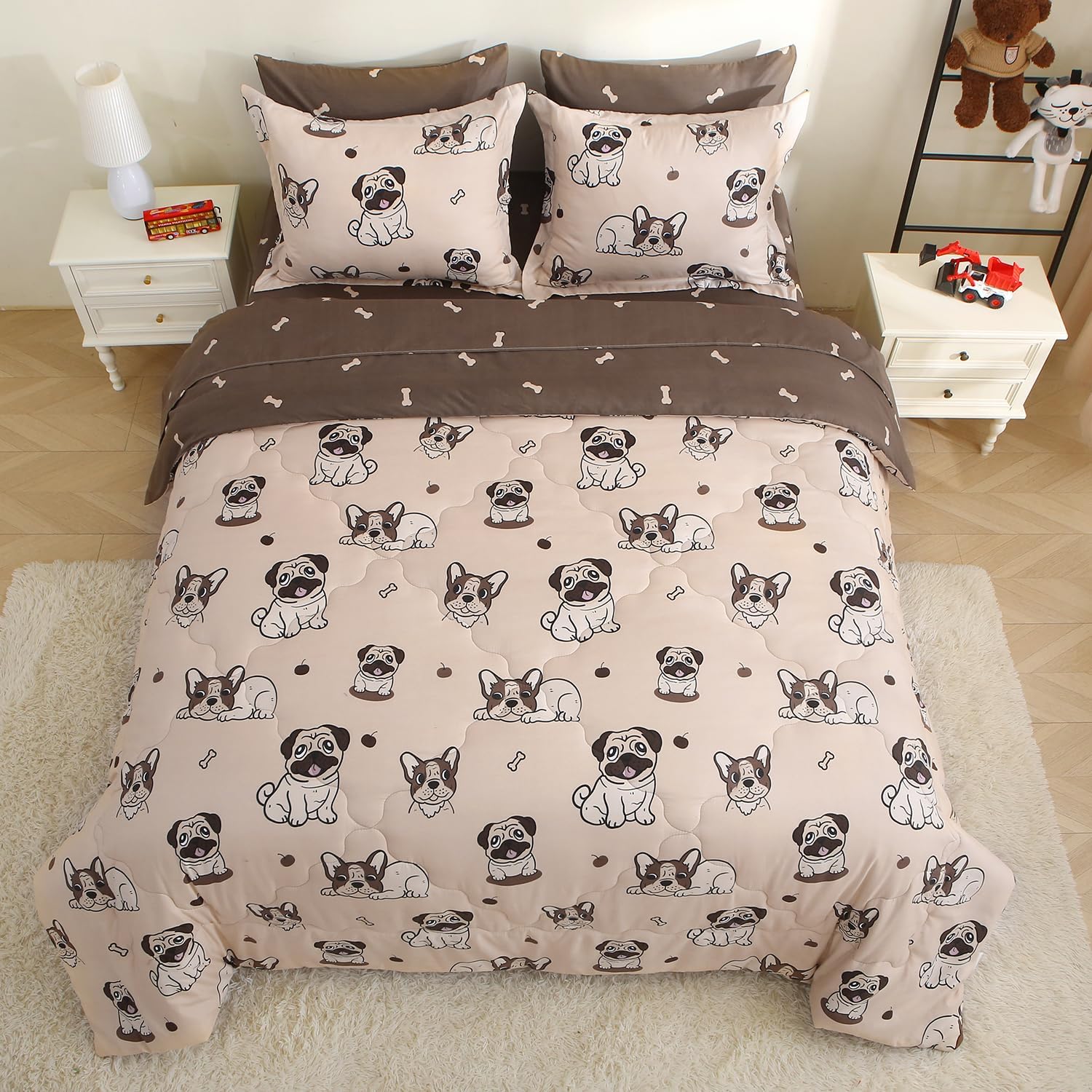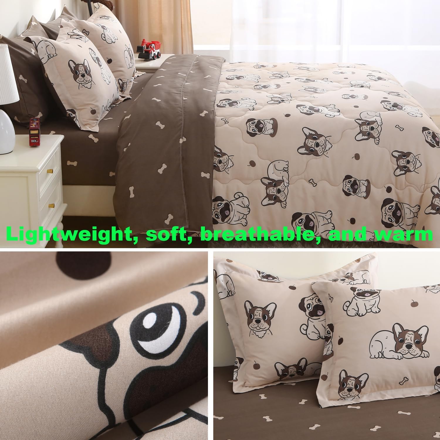 Kids Comforter Set 7 Piece Bedding Cute Dog Cartoon Animal Bed Microfiber Comforter Twin Size All Season (1 Comforter, 1 Flat Sheet, 1 Fitted Sheet, 4 Pillowcase)