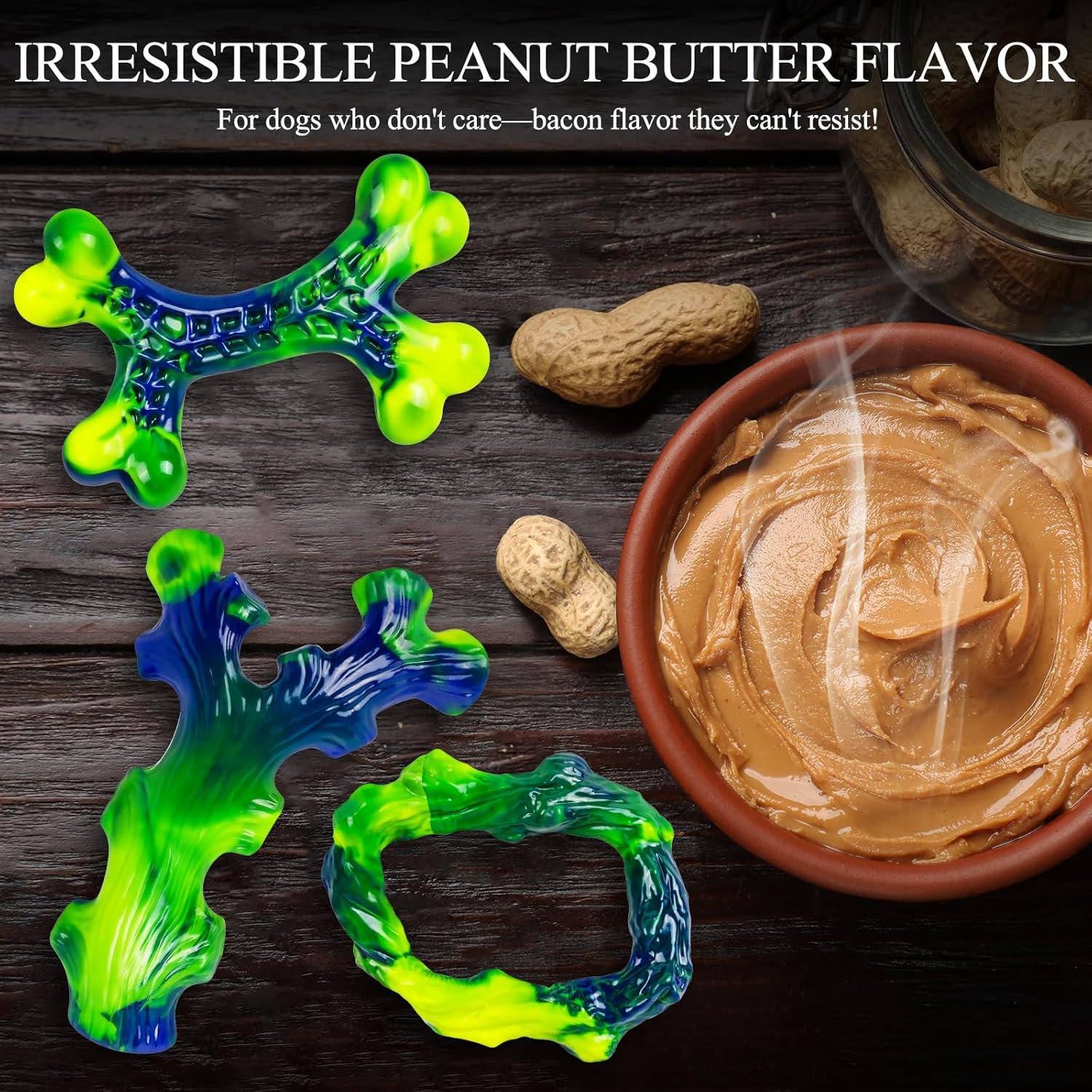 - STRONG PEANUT BUTTER FLAVOR FOR GENUINE TASTE: With real peanut butter essence added, this large chew toy is impossible for power chewers to resist. As a top-quality durable toy, it satisfies the urge to chew while withstanding the jaw strength of a bulldog. Whether you’re traveling with your dog or leaving them at home alone, this toy provides endless fun.