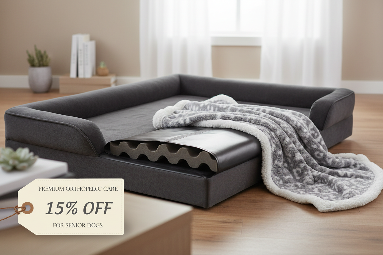 The washable orthopedic dog bed with a non-slip bottom provides steady support